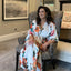 Elegant leopard print kimono bathrobe with a relaxed fit and graceful drape, designed as One Size Fits Most (max 49-inch chest) for broad adaptability. Crafted from durable polyester, this robe combines fierce style with hassle-free care—far more cost-effective than high-maintenance mulberry silk alternatives.