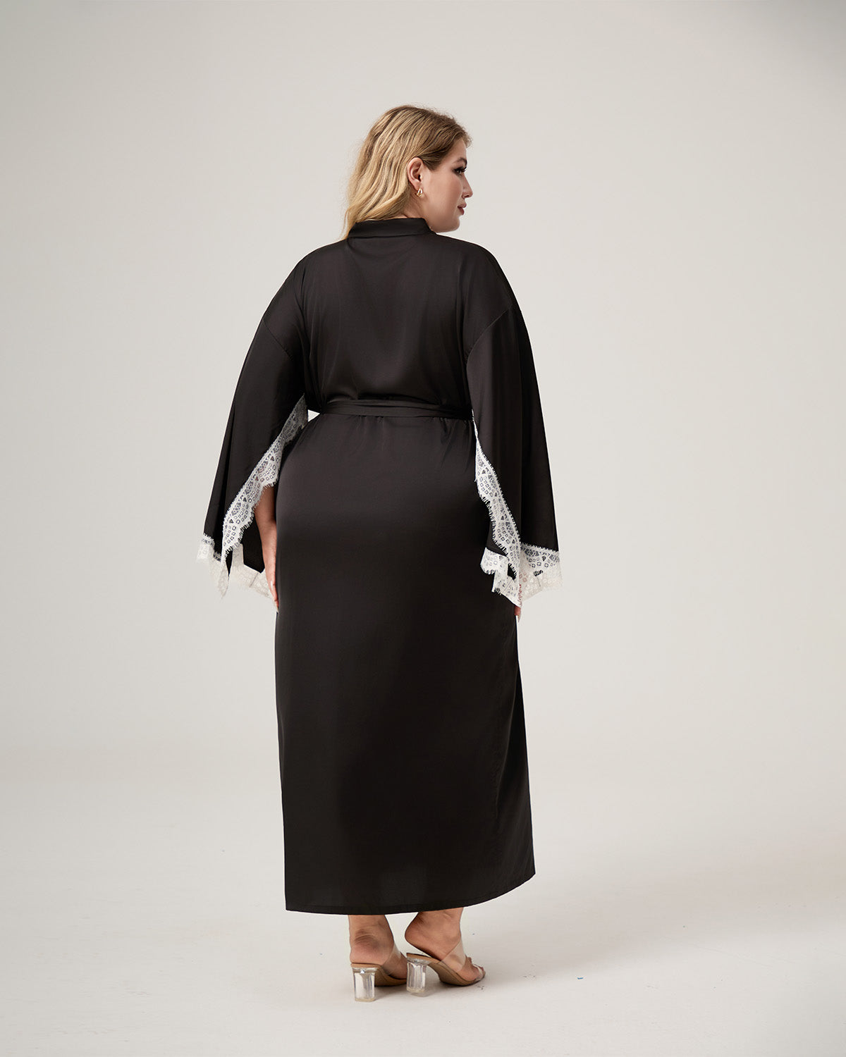 Lace-Trimmed Robe - Delicate lace accents on wide, flowing sleeves add elegant detail