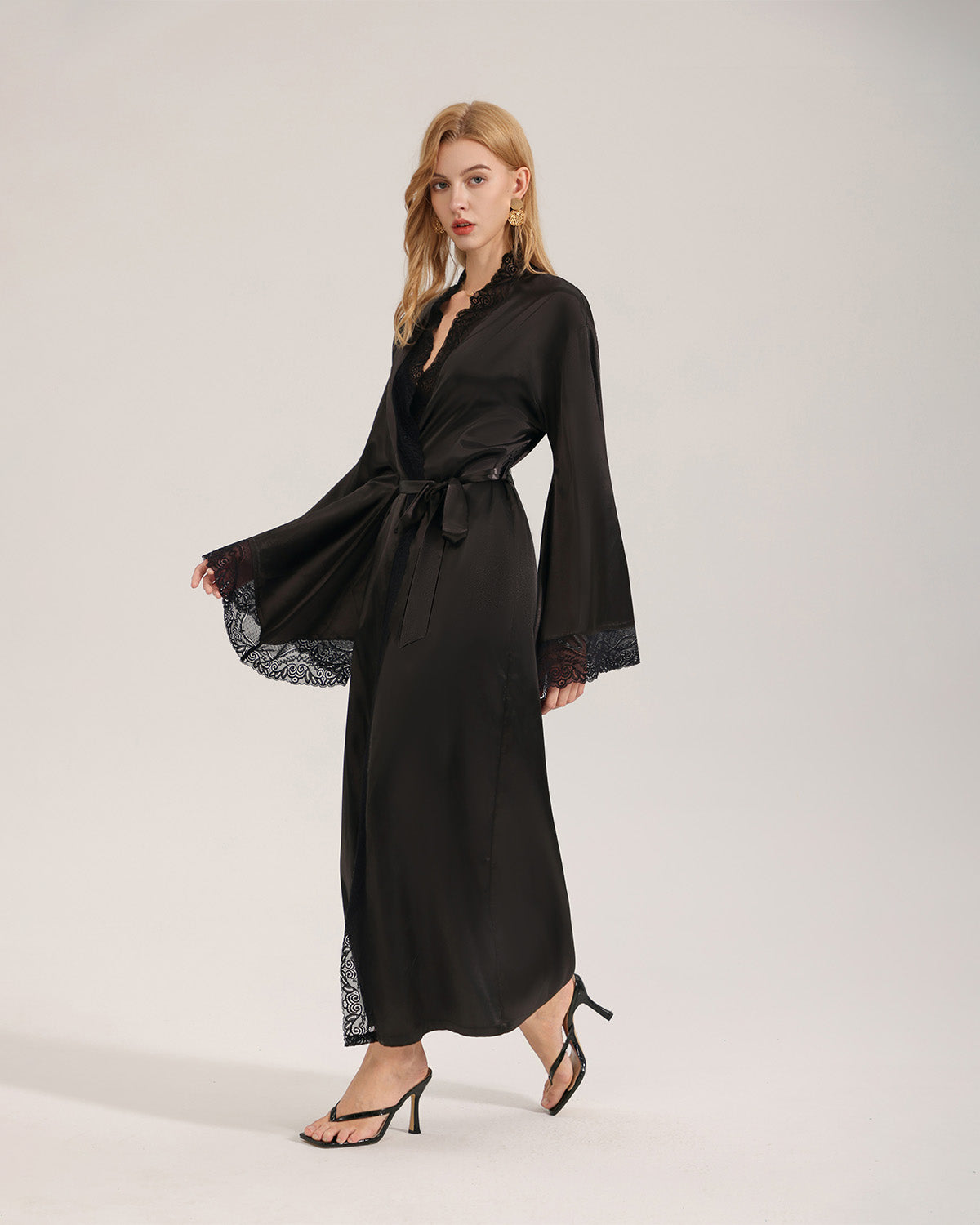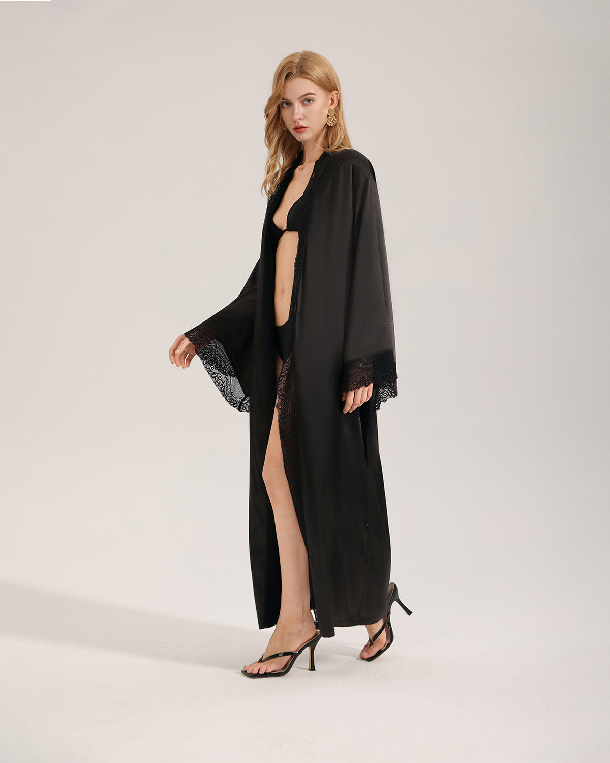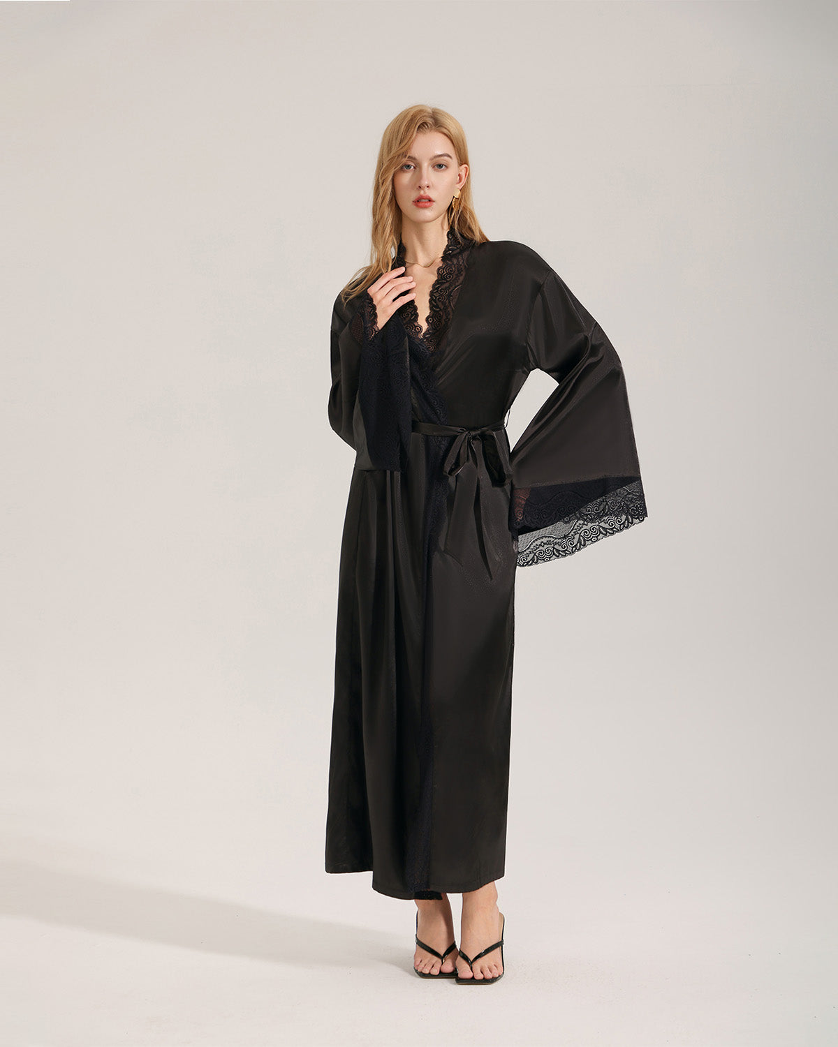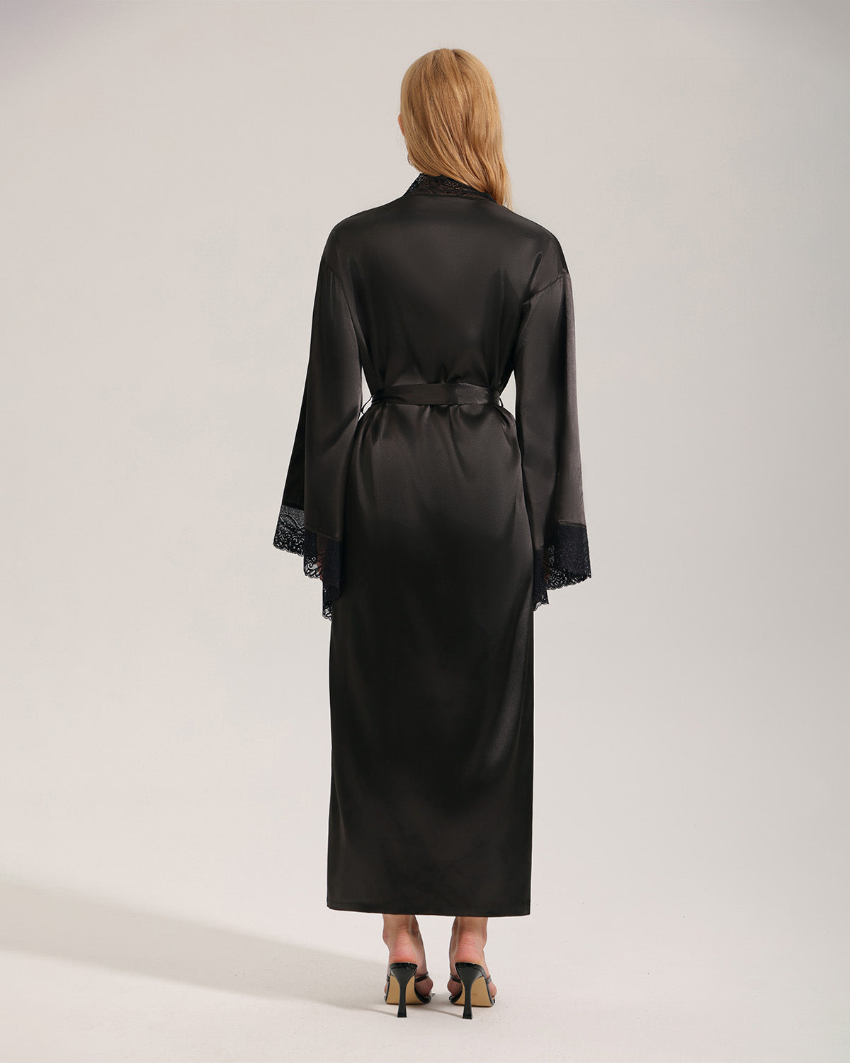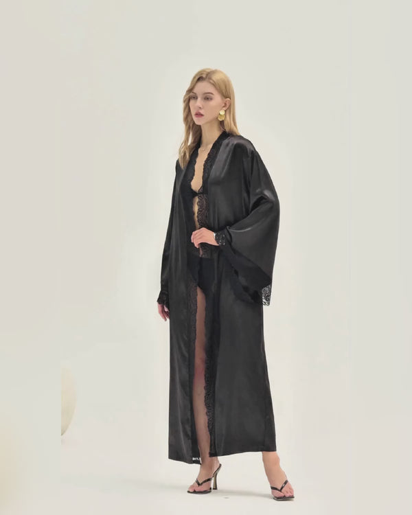 Embrace everyday luxury with our sleek black long robe. Designed with a flattering wrap-around silhouette and accented with delicate pink piping, this robe combines sophisticated style with ultimate comfort. The smooth, satin-like fabric and matching belt create a personalized lounging experience that feels as good as it looks.