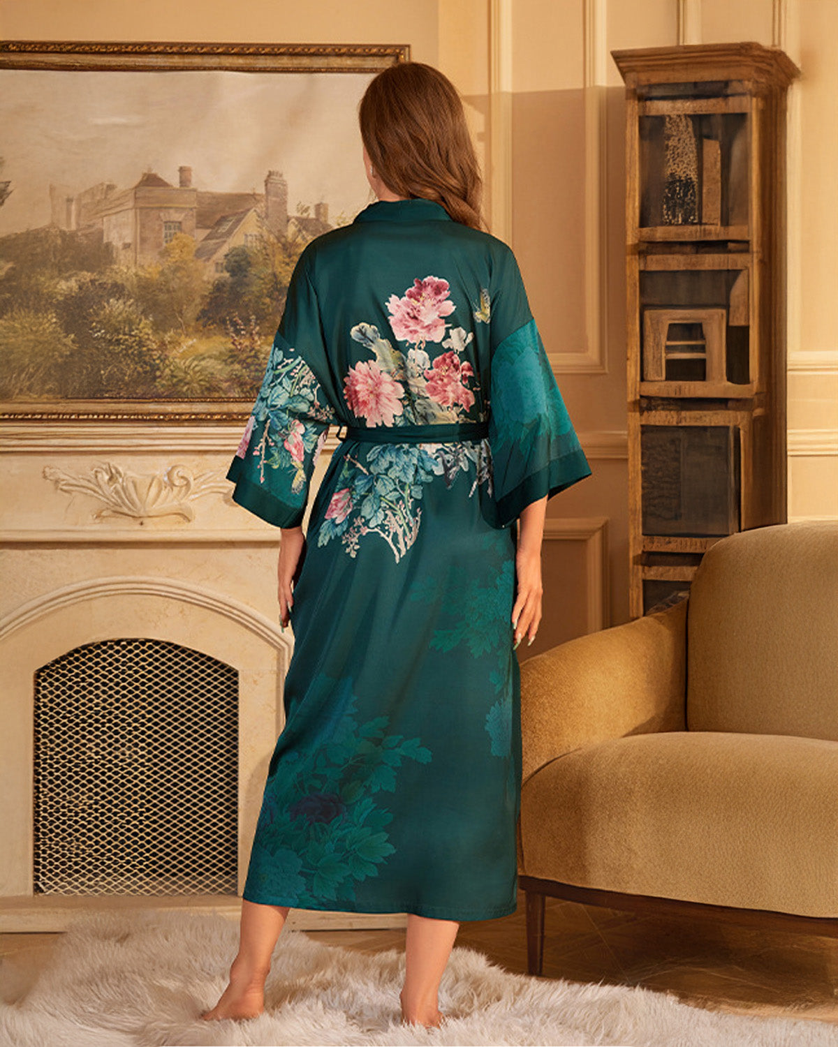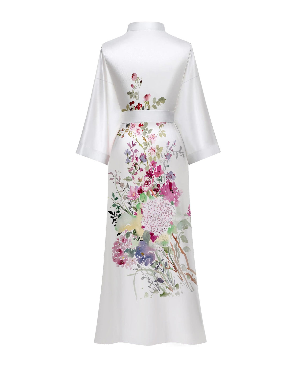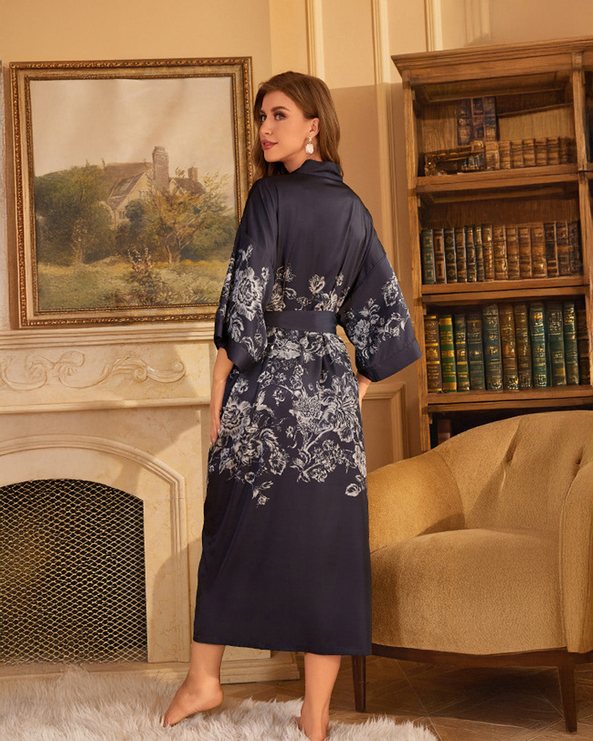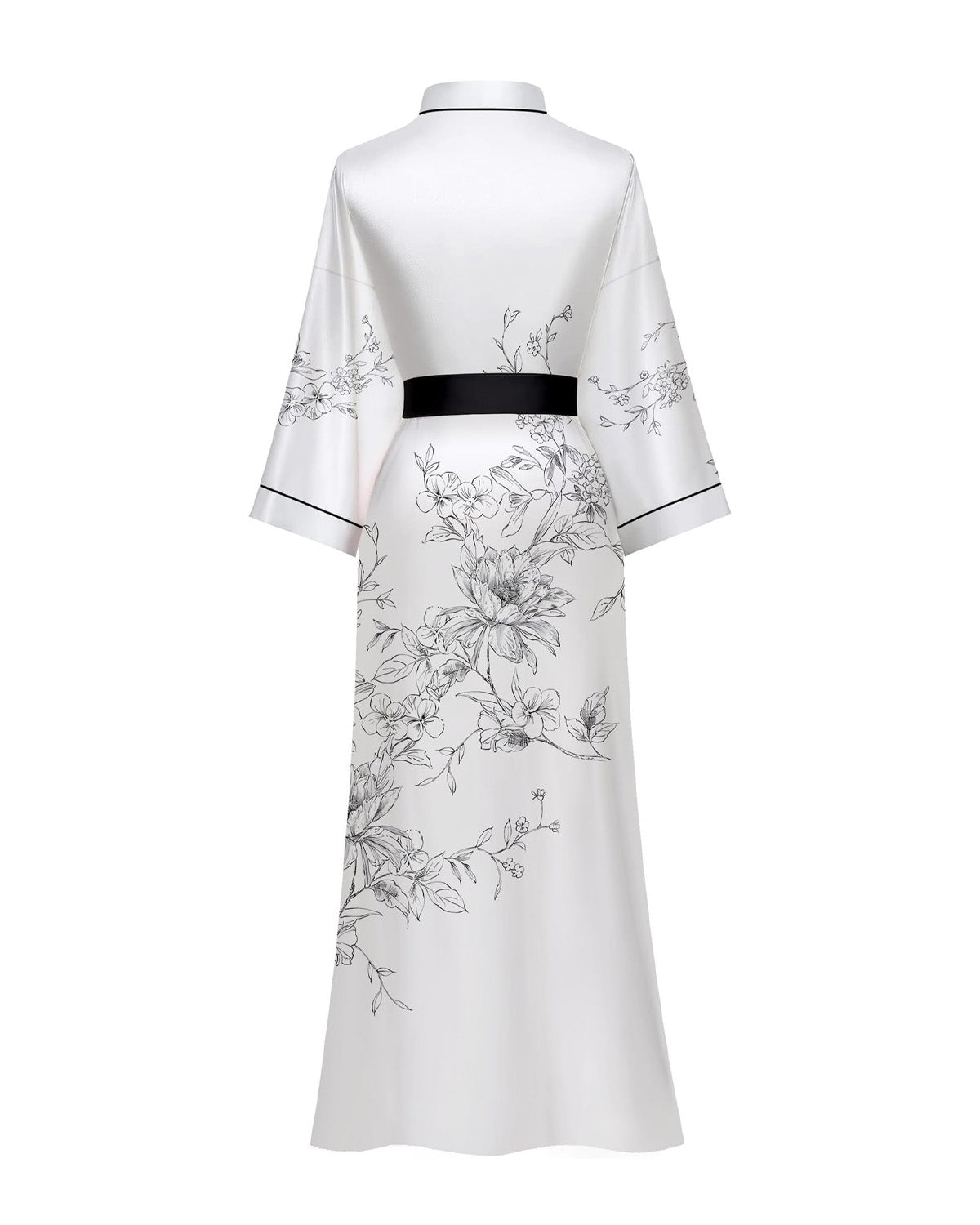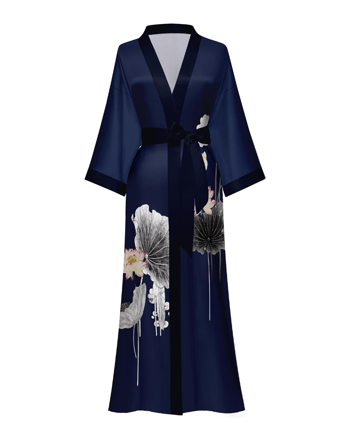 Luxurious Satin Kimono Robe – Wrap yourself in ultra-soft charmeuse satin with a delicate drape and elegant floral prints. This lightweight, glossy robe feels like silk against your skin, offering effortless glamour for lounging, spa days, or getting ready in style.