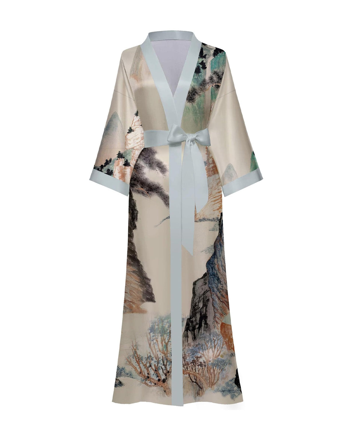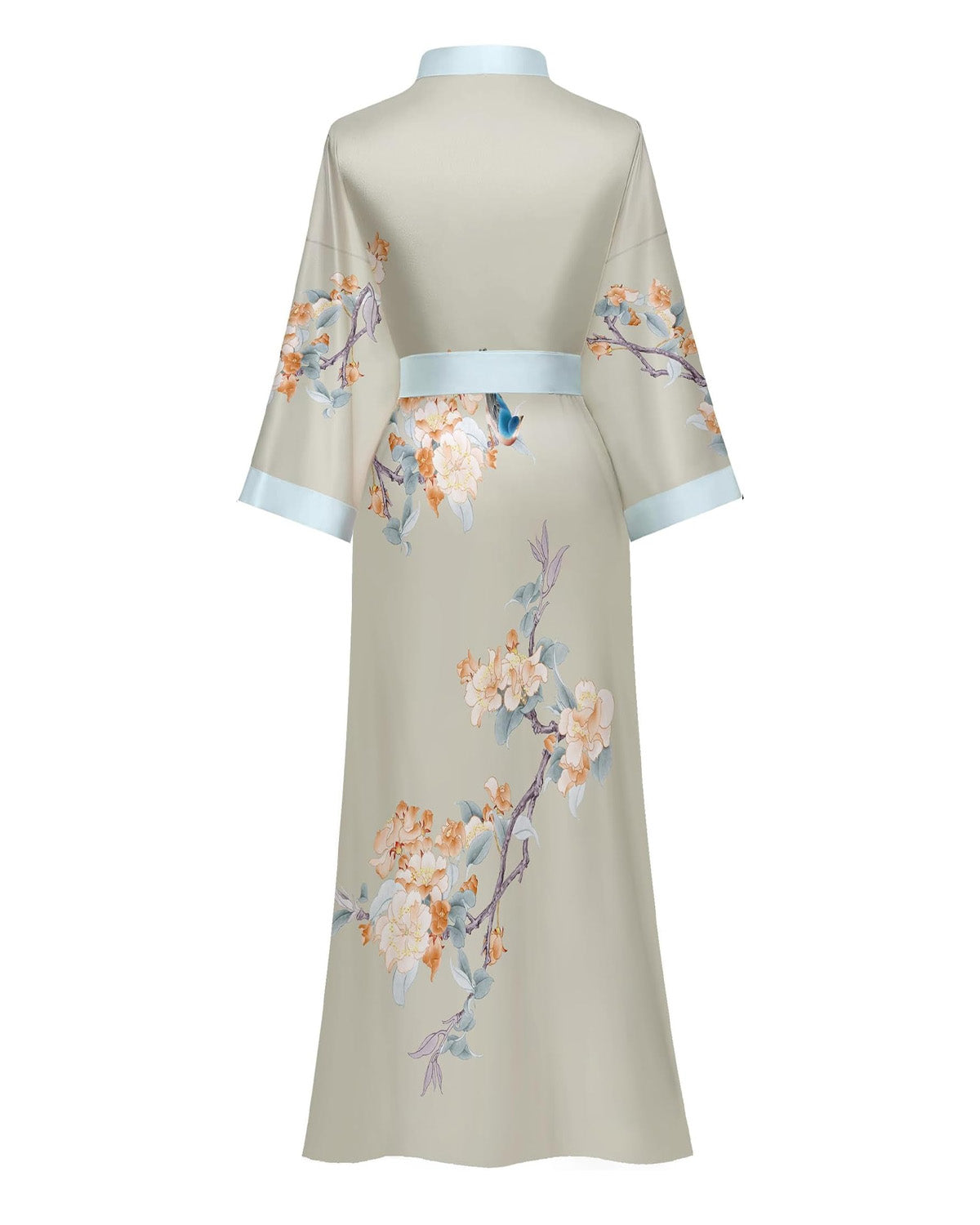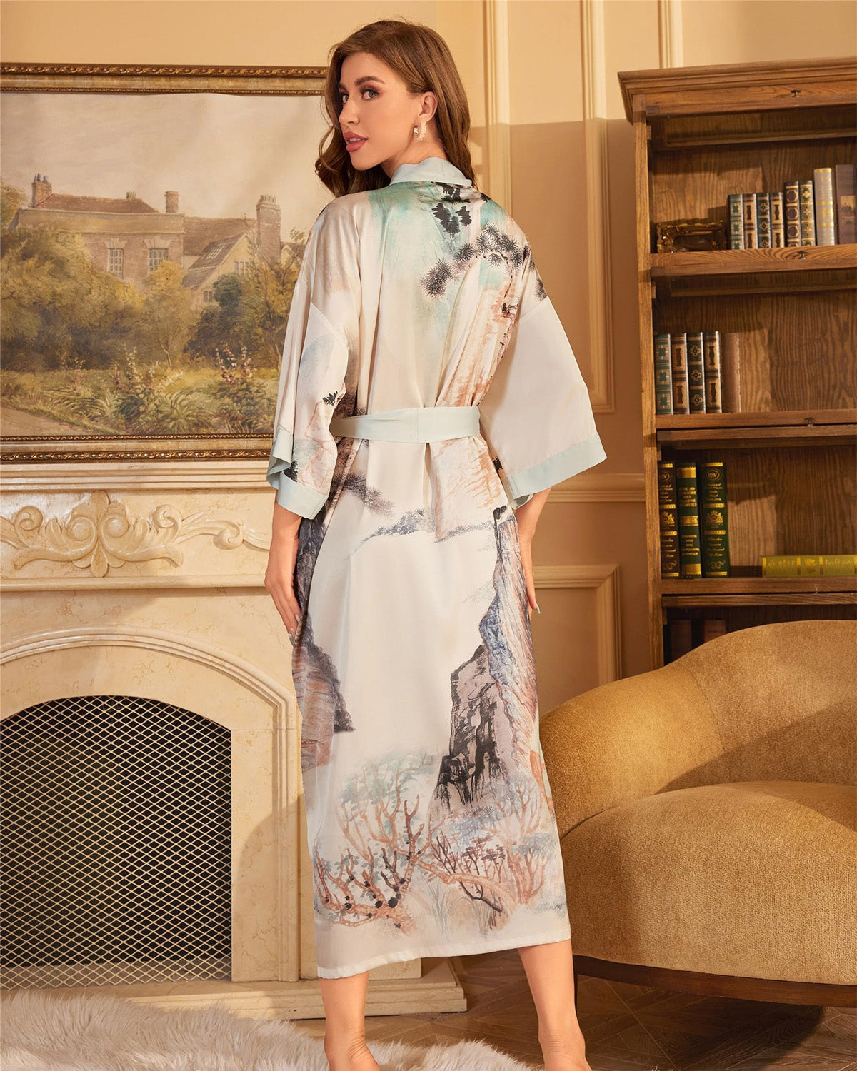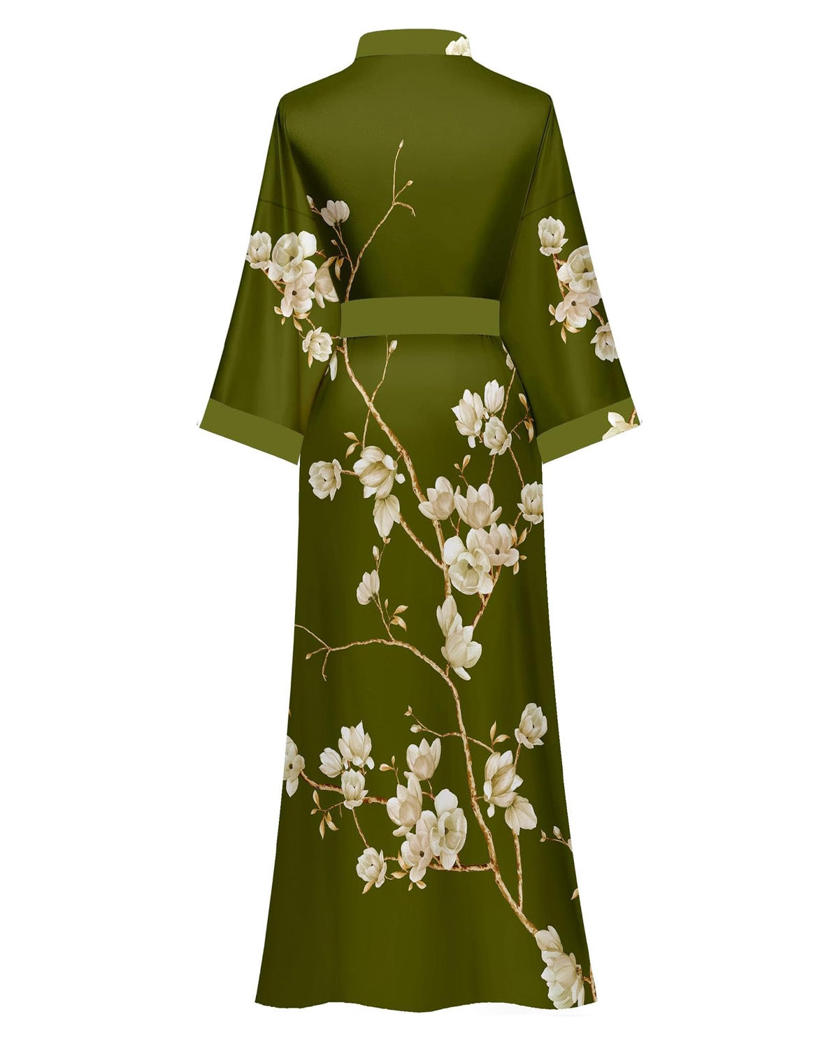 Luxurious Satin Kimono Robe – Wrap yourself in ultra-soft charmeuse satin with a delicate drape and elegant floral prints. This lightweight, glossy robe feels like silk against your skin, offering effortless glamour for lounging, spa days, or getting ready in style.