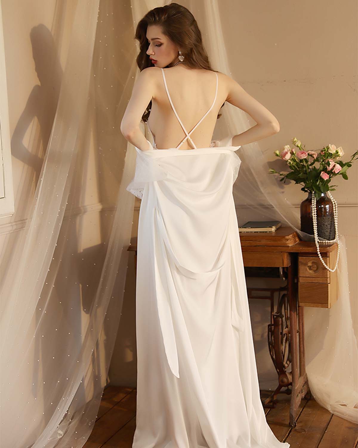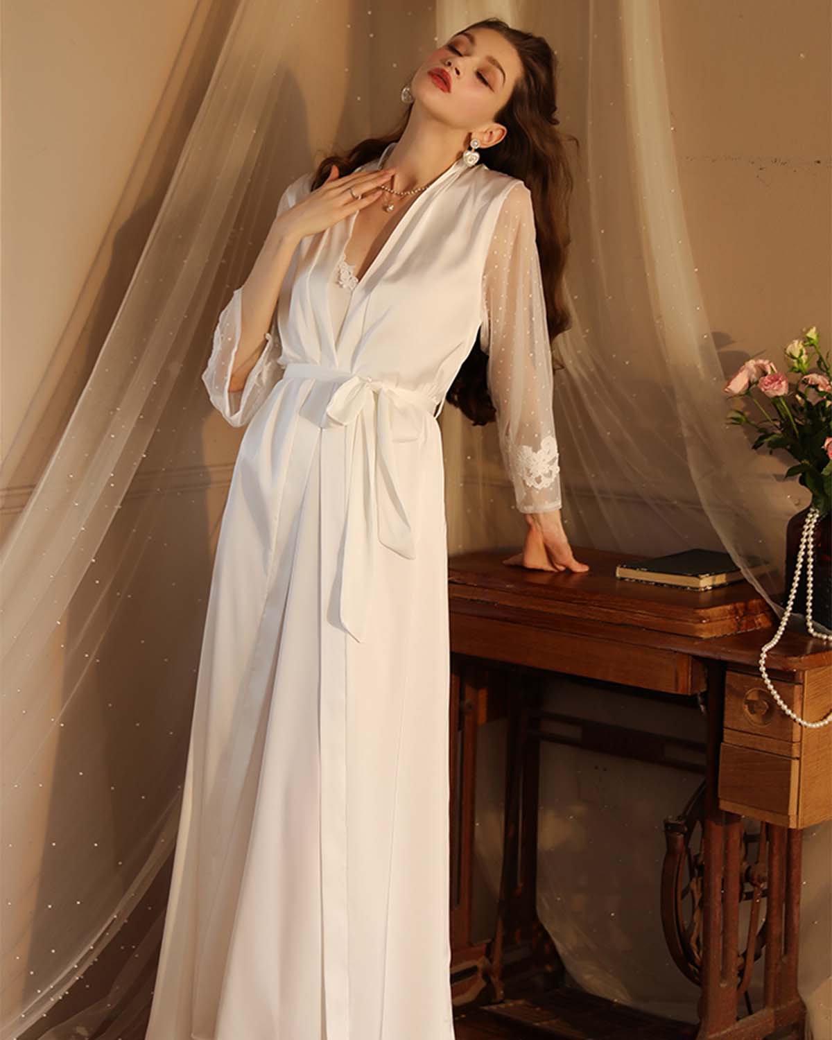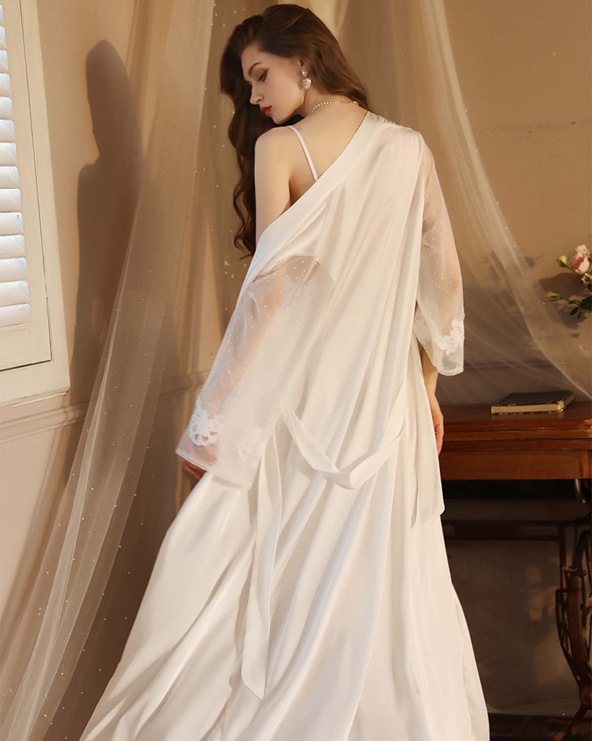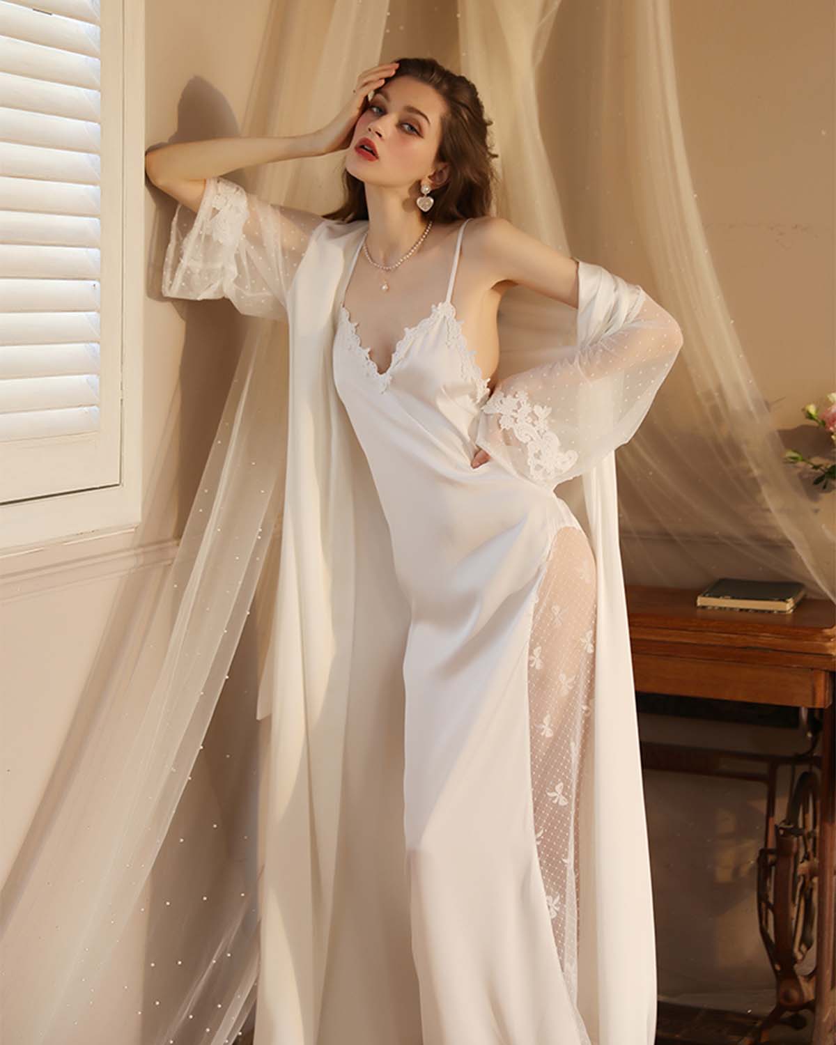 Two-Piece Design – Includes a sleeveless slip dress and matching long robe