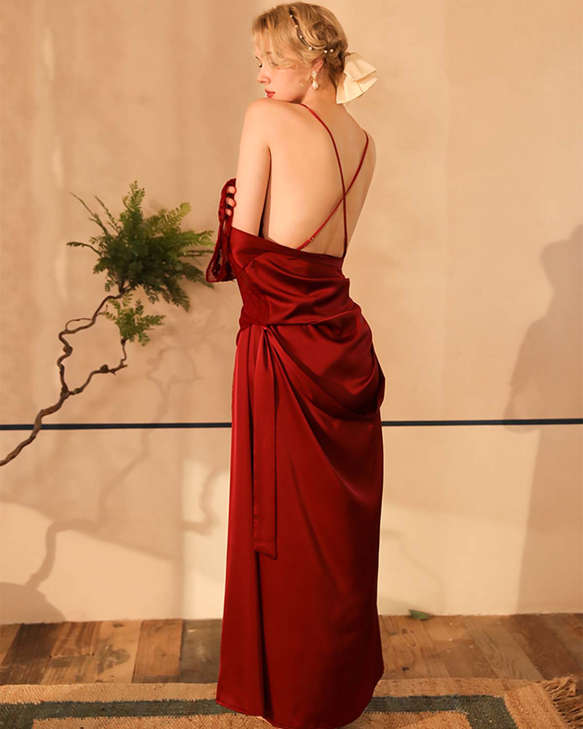 Open-Back Detail – Slip dress with crisscross straps and lace trim for allure