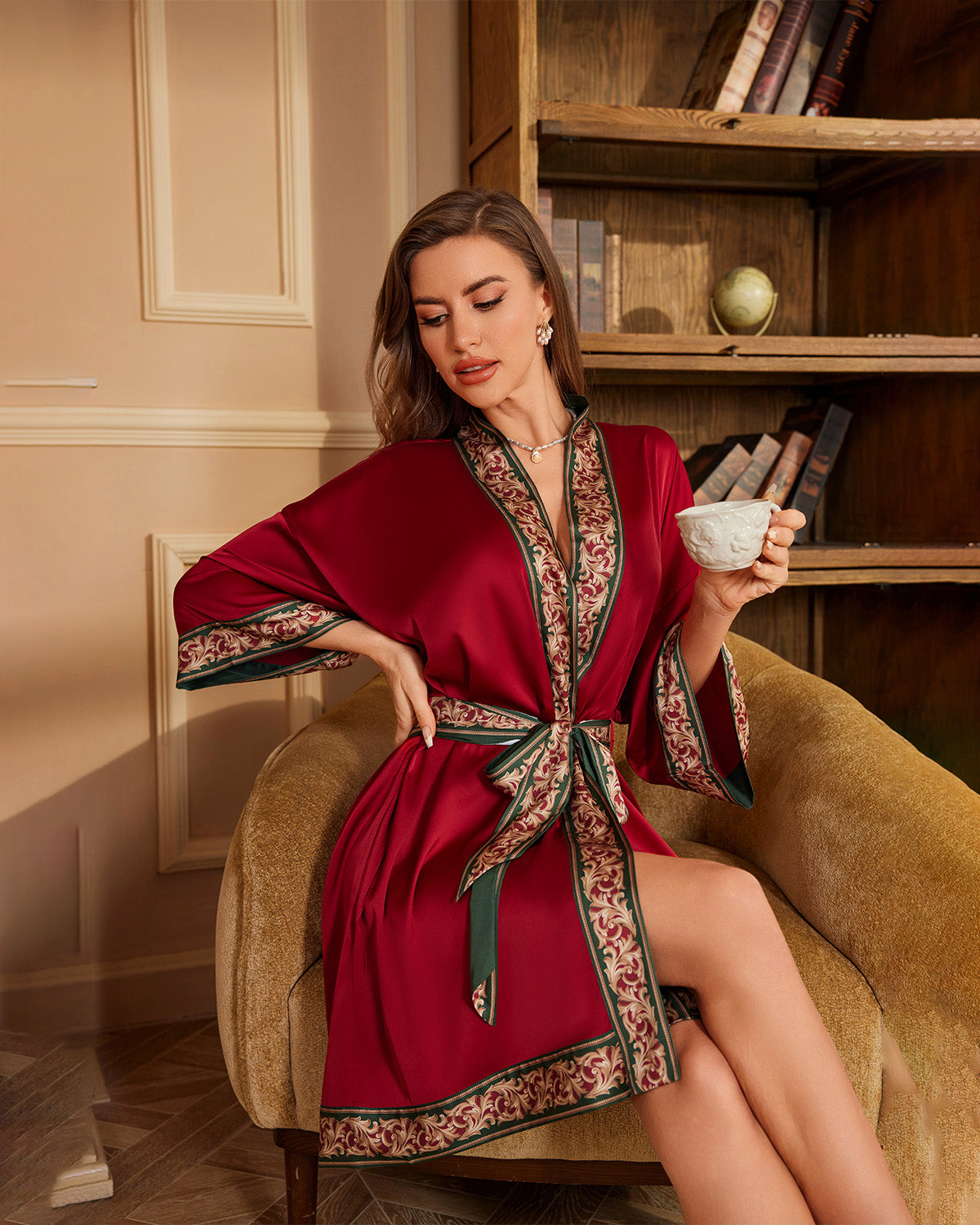 Elevate your downtime with our Scarlet Satin Chiffon Robe, a statement of pure luxury. Crafted from ultra-lightweight satin chiffon, this robe drapes like a dream, offering a barely-there feel against your skin while adding timeless sophistication to your loungewear collection.