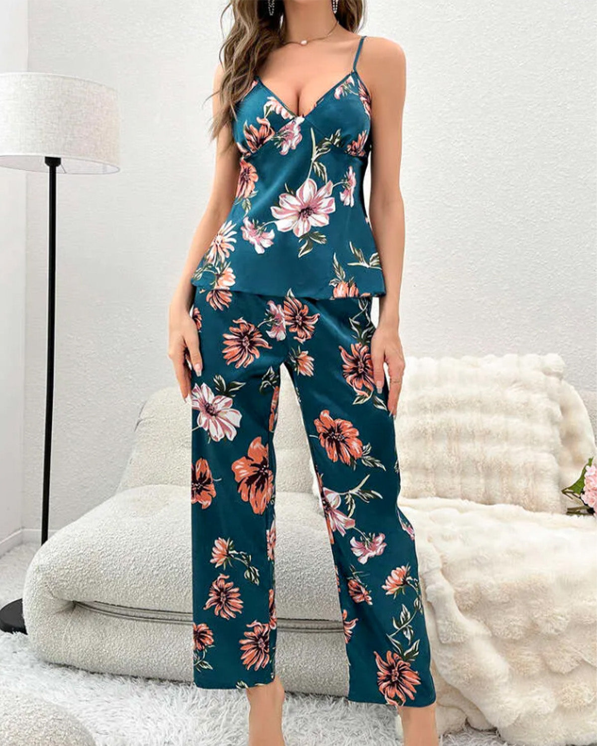 Drift into a world of serene elegance with the Emerald Serenity Pajama Set. This enchanting three-piece ensemble features a camisole, matching robe, and comfortable pants, designed for luxurious relaxation with a silky-smooth feel and vibrant floral print. Perfect for unwinding after a long day or enjoying leisurely weekends, it invites you to indulge in effortless style and supreme comfort.