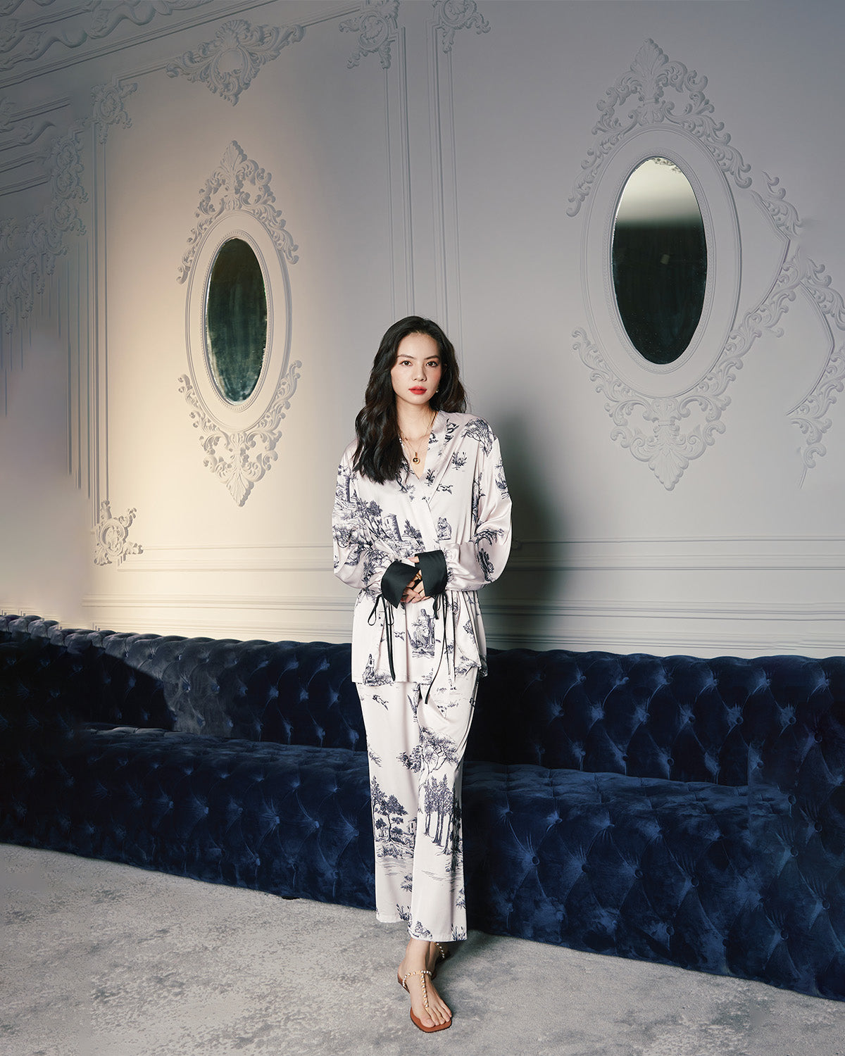 Drift into a world of serene luxury with the Whispering Woods Silky Pajama Set. Inspired by nature's artistry, this exquisite two-piece set offers the ultimate in comfort and refined style, inviting you to unwind in elegant tranquility. Perfect for the modern woman who appreciates life's finer moments.