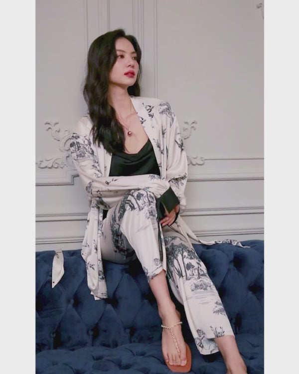 Nature-Inspired Design - Artistic woodland pattern brings serene elegance to your loungewear